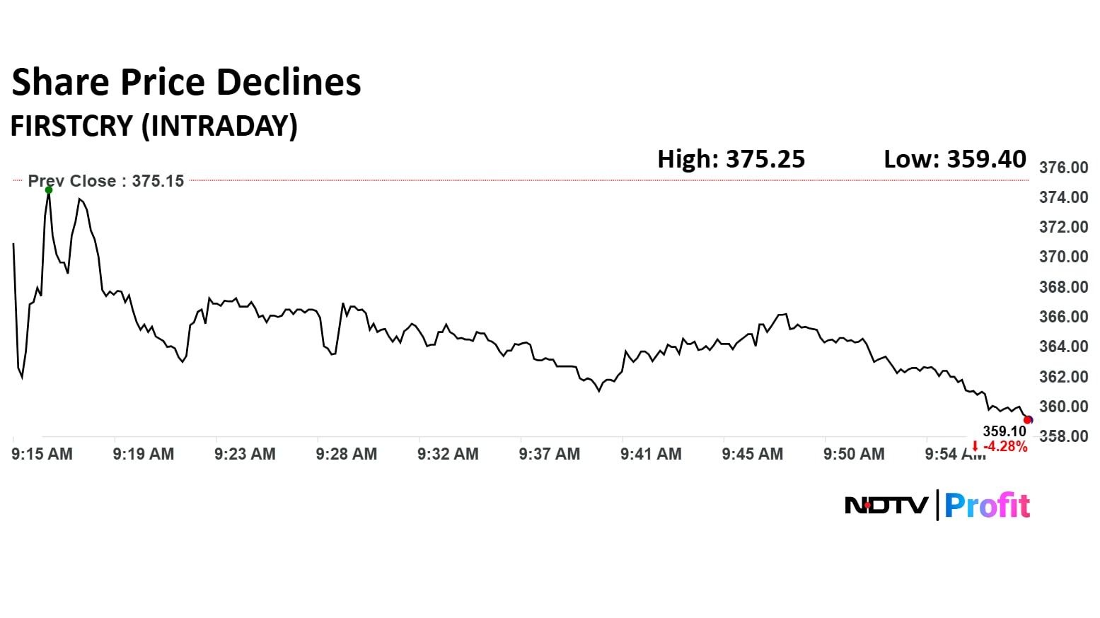 The scrip fell as much as 5.62% to Rs 352.05 apiece. It pared some losses to trade 5.49% lower at Rs 354.55 apiece, as of 11:04 a.m. This compares to a 0.61% decline in the NSE Nifty 50.