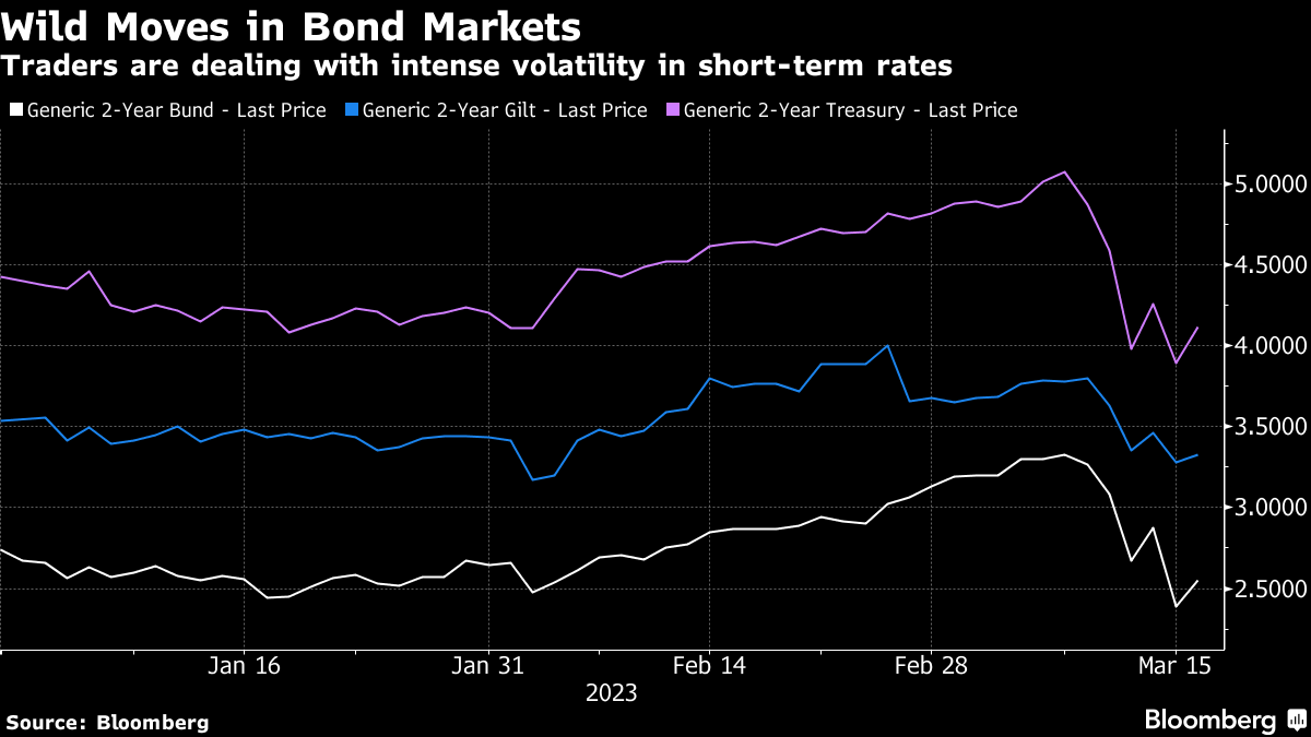 Volatility in government bond yields have been especially hurting trades tied to short-dated rates after the collapse of SVB prompted market participants to reassess whether central banks will change or stick to their current monetary policy strategies.