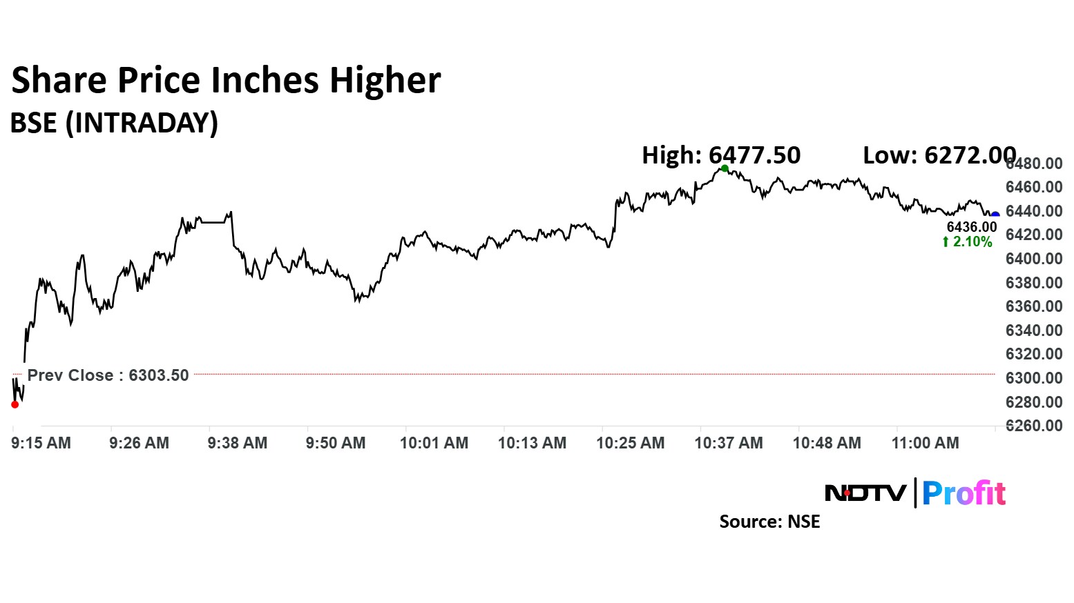 The scrip rose as much as 2.76% to Rs 6,477.50 apiece. It pared gains to trade 2.17% higher at Rs 6,440.50 apiece, as of 11:10 a.m.