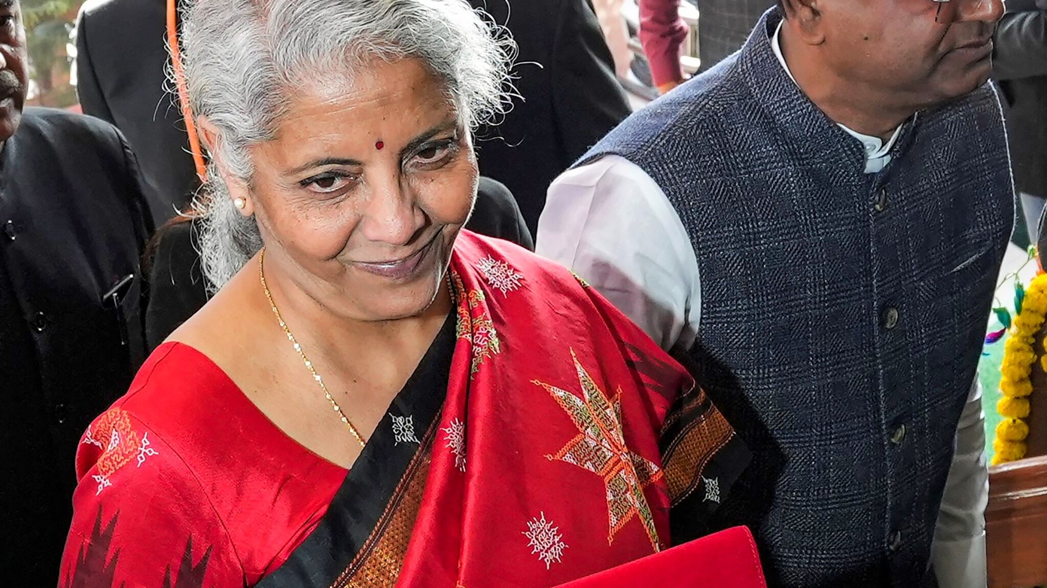 FM Nirmala Sitharaman arrives at Parliament House to present the Union Budget 2023-24, in New Delhi on February 01, 2023. (Source: PIB)