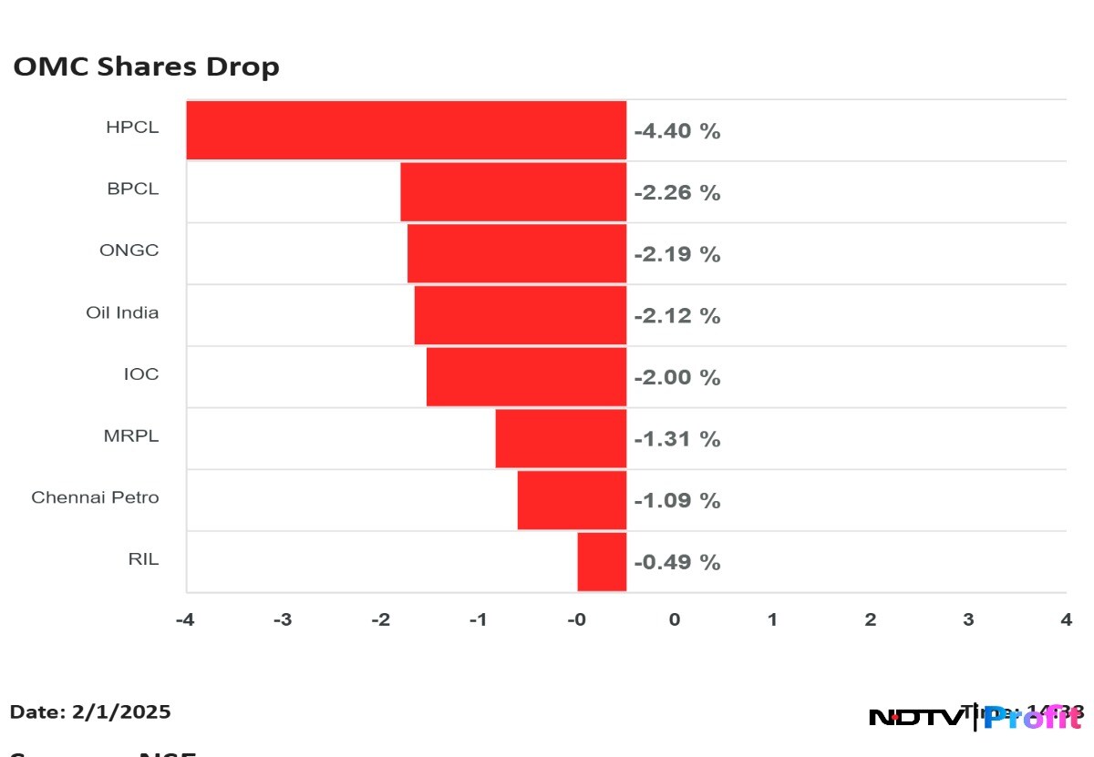 Shares of Indian Oil Corp., Bharat Petroleum Corp., Hindustan Petroleum Corp., Oil and Natural Gas Corp. and other oil firms were trading lower on Saturday, after the centre did not announce subsidies for LPG losses incurred by companies in fiscal 2025 in the Union Budget 2025–26.