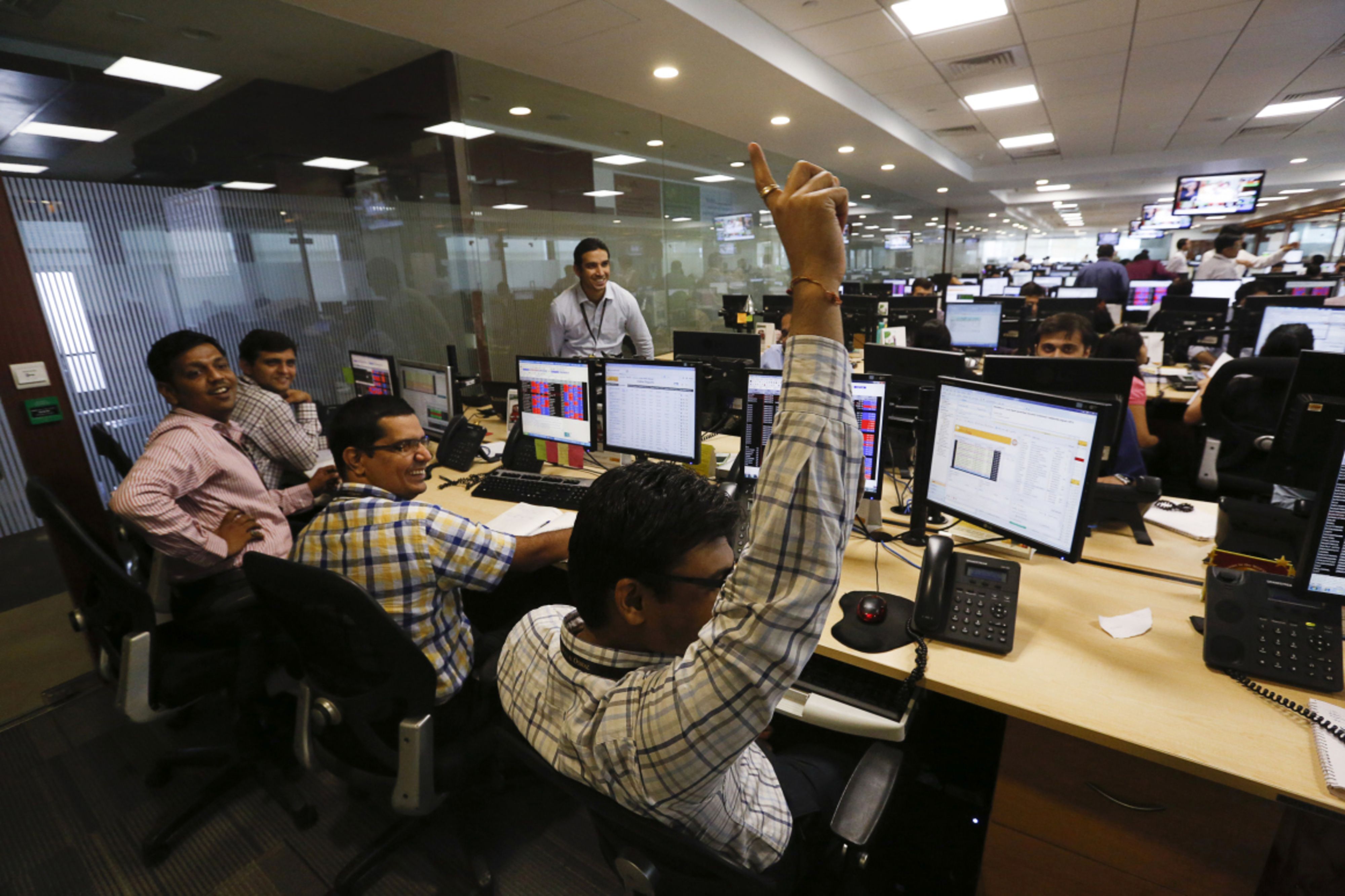Stockbrokers on the trading floor of Motilal Oswal Financial Services’ office in Mumbai, India. (Photographer: Vivek Prakash/Bloomberg)