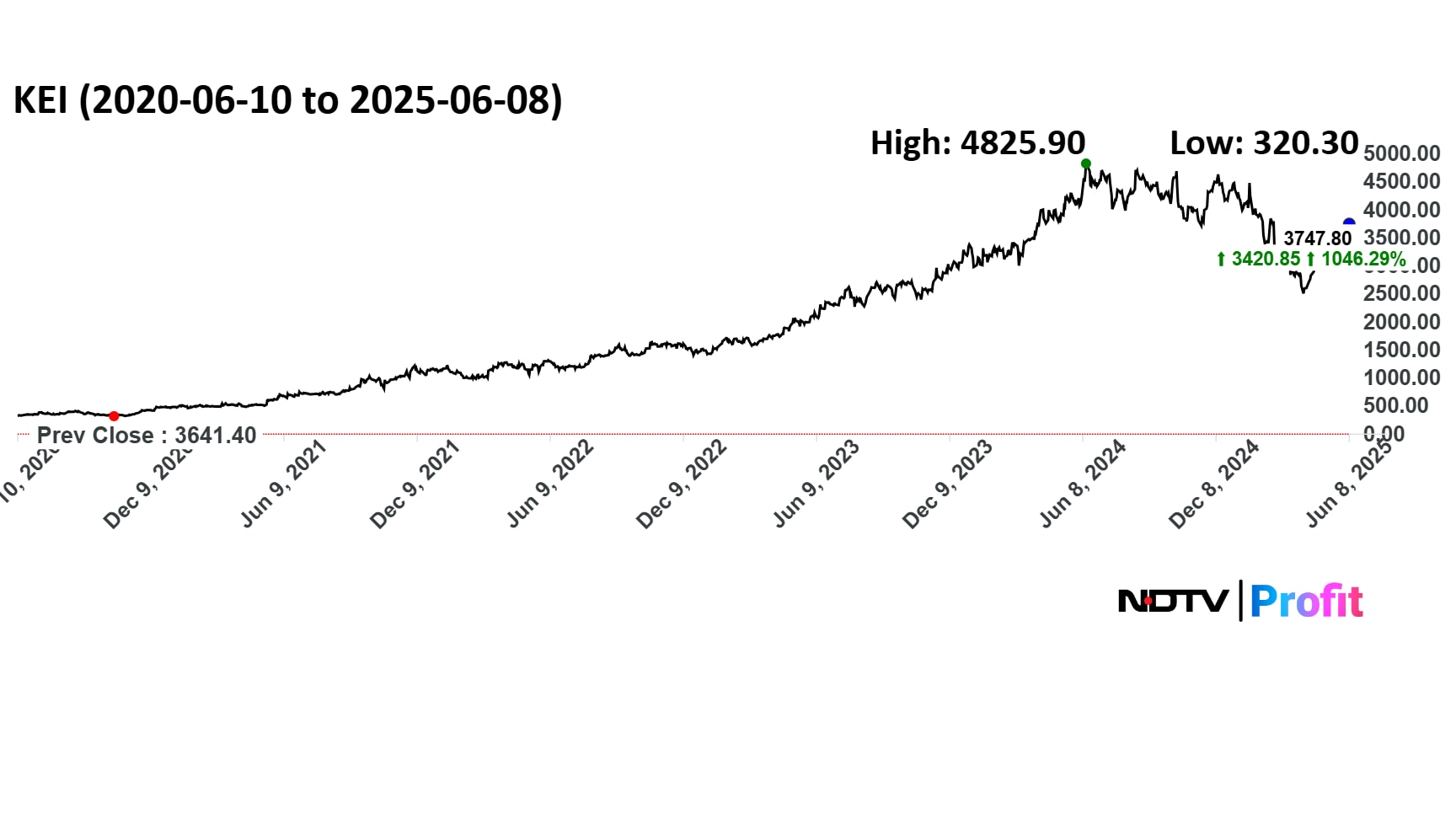 KEI Industries Ltd., a manufacturer of wires and cables, is a multibagger stock that has rallied over 1000% over the last five years.
