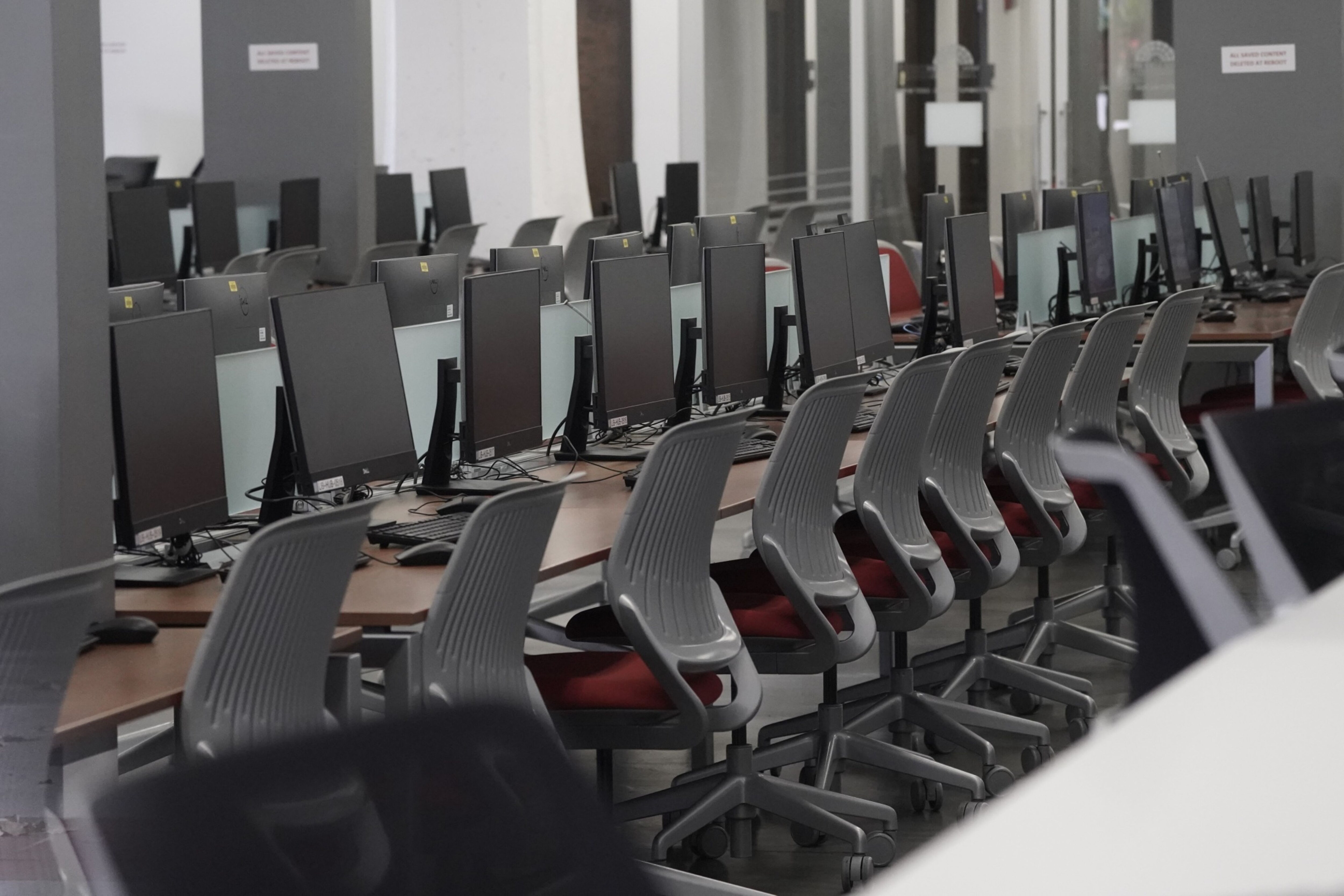 Desktop computers inside the Malcolm A. Love Library on the campus of San Diego State University (SDSU), part of the California State University (CSU) system, in San Diego, California, U.S. (Photographer: Bing Guan/Bloomberg)