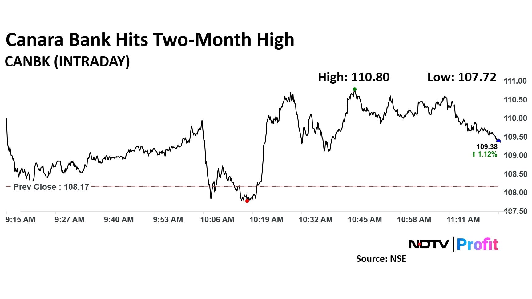 The scrip rose as much as 2.4% to Rs 110.8 apiece, the highest level since Oct. 1. It pared gains to trade 1.2% higher at Rs 109.42 apiece, as of 11:26 a.m. This compares to a 0.1% decline in the NSE Nifty 50 Index.