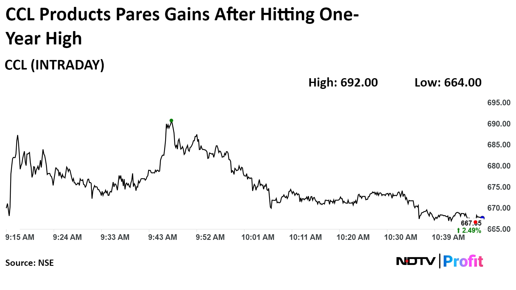 Shares of the company rose 6.22% to Rs 692, its highest level since July 17, 2023. It pared gains to trade 2.6% higher at Rs 667.95 as of 11:10 a.m., compared to a 0.4% decline in the Nifty. The stock has risen nearly 6% in three consecutive sessions of gains.