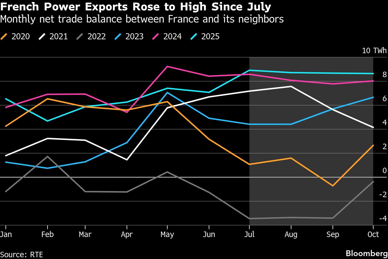 France exported the most electricity in at least two decades from July to October due to strong nuclear and renewables output. The figures underscore the improved performance of the French nuclear fleet, which supplies more than two-thirds of the country's electricity and remains a cornerstone of Europe's power system.