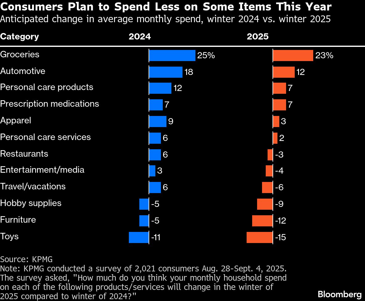 In the US, consumers exercised caution going into the longest-ever government shutdown, and early signs suggest holiday spending will be concentrated more on snagging deals for essentials rather than discretionary items.