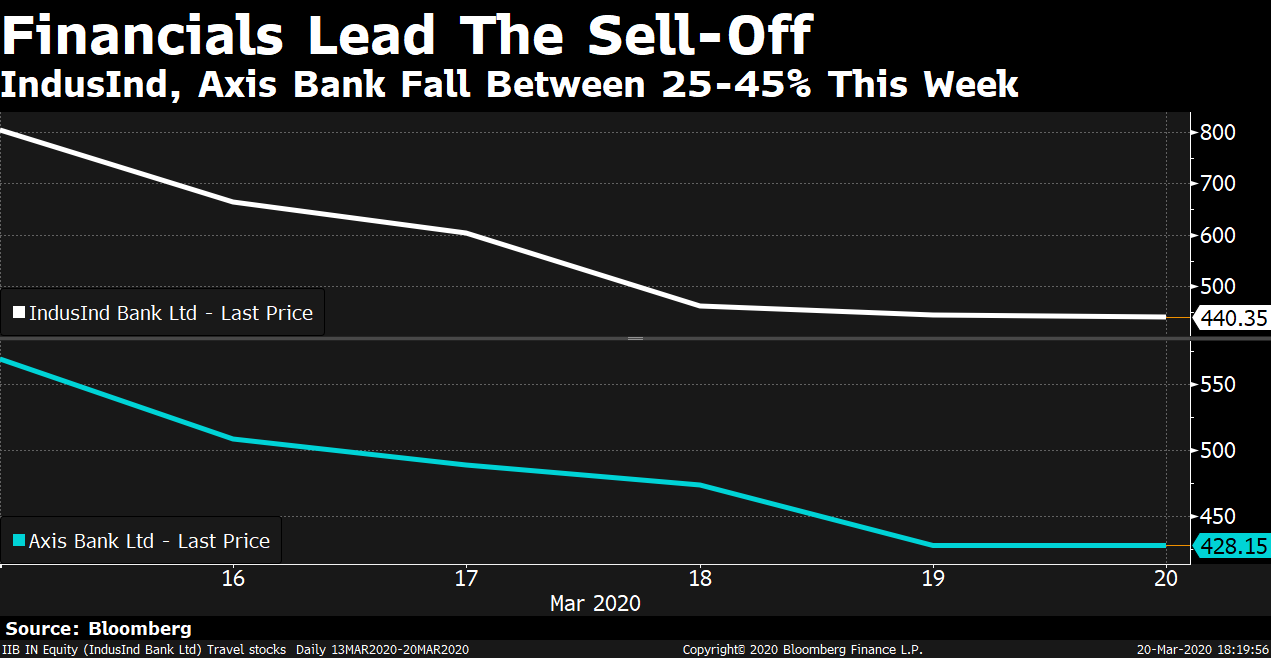 The Nifty Bank index saw its biggest weekly fall since 2004, led by heavyweights HDFC Bank Ltd. (down 17 percent for the week) and ICICI Bank Ltd. (down 22 percent). However, the biggest underperformers were IndusInd Bank Ltd. and Axis Bank Ltd., which saw sustained selling pressure through the week.