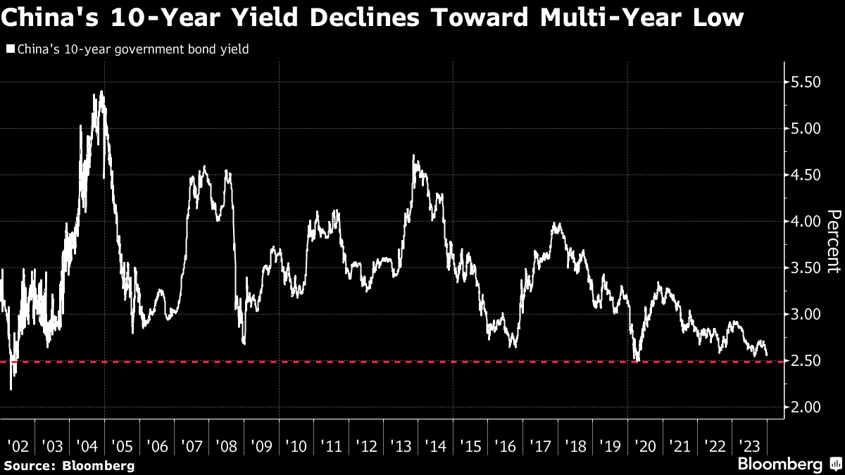 China's bond market has rallied since December, sending a loud signal that expectations are intensifying for fresh monetary stimulus. The yield on the 10-year sovereign notes dropped to 2.54% on Thursday, the lowest since April 2020.