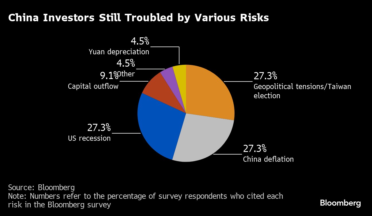 Those are the key takeaways from an informal survey of 23 mostly mainland-based analysts and money managers by Bloomberg News. Geopolitical tensions, China deflation and a possible US recession are seen as the greatest threats, while potential positives include bargain hunting after the prolonged selloff and an end to the foreign-investor exodus.