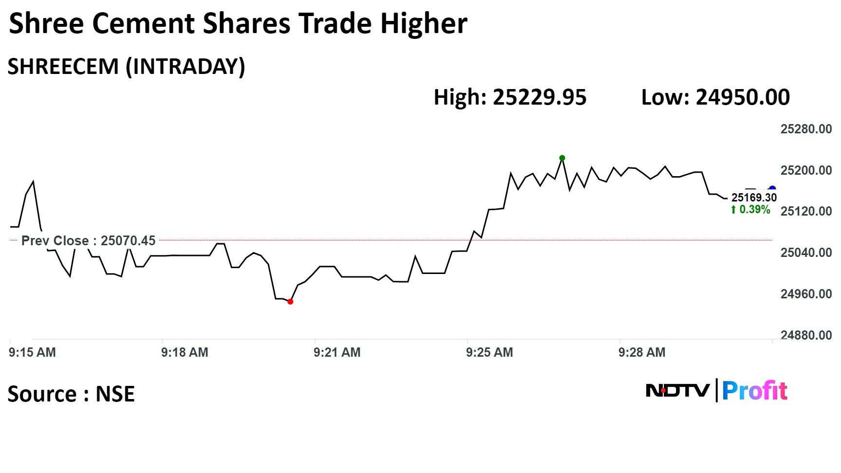 Shares of Shree Cement rose as much as 0.64% during the day to Rs 25,229.9 apiece on the NSE. It was trading 0.47% higher at Rs 25,288.6 apiece, compared to a 0.06% advance in the benchmark Nifty 50 as of 9:29 a.m.