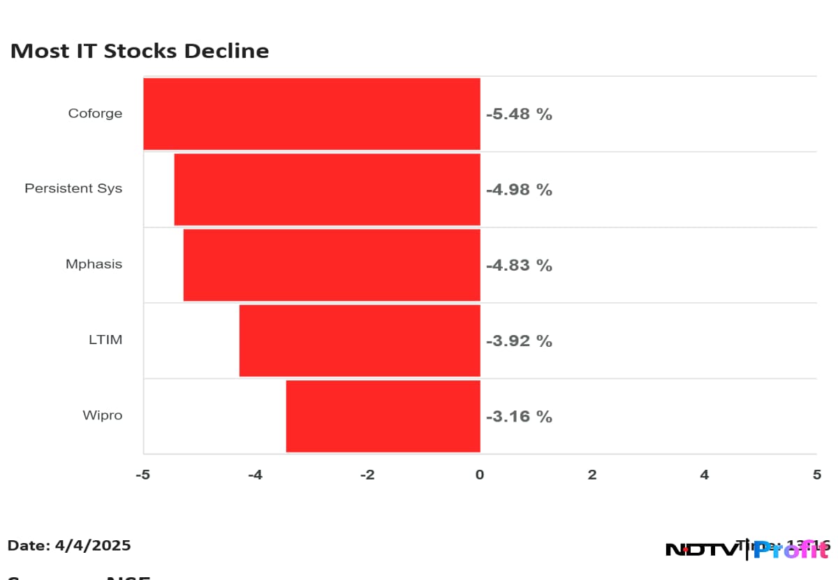 Coforge lost over 7% intraday, while Persistent Systems sunk 6.15%. LTIMindtree shares declined 5.07% during the session. Mphasis Ltd. was down nearly 5% on Friday.