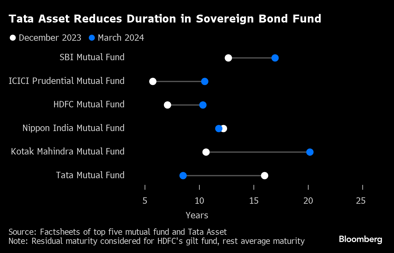 Tata Asset Management Pvt. has slashed the average maturity of its sovereign bond fund to about five years, from over eight years last month and 16 years in December, Akhil Mittal, senior fund manager, said in an interview. That compares with a maturity of nearly 14 years for the benchmark Crisil dynamic gilt index.