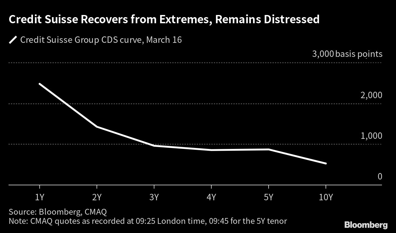 Credit Suisse Default Swaps Drop After Central Bank’s Liquidity Pledge