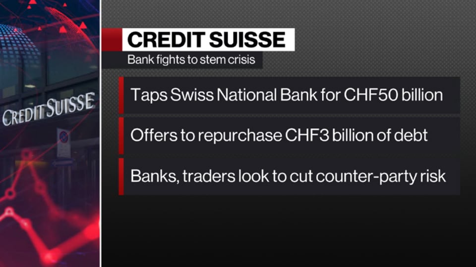 The bank's bonds and shares also plunged, leading the Swiss National Bank to pledge to provide emergency financing if needed. The lender can borrow as much as 50 billion Swiss francs ($54 billion) from the central bank liquidity facility.