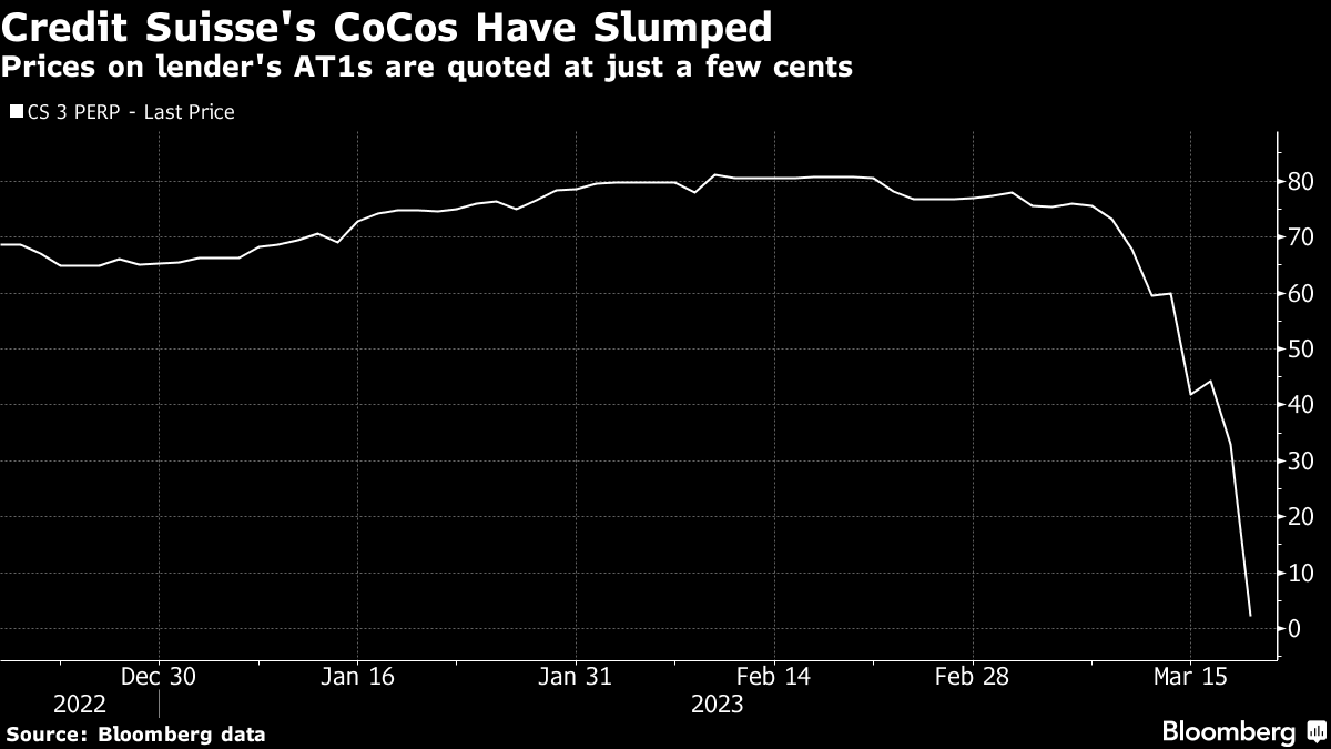 Yet, judging by the market action, investors aren't sticking around to find out. All kinds of risky bank debt tumbled on Monday and analysts predicted far-reaching consequences to Europe's funding market. The market for new AT1 bonds will likely go into deep freeze, traders said.