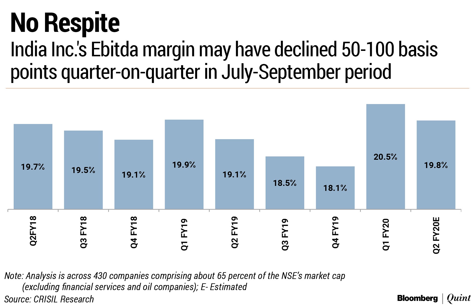 - FMCG: Crisil Research expects a lower year-on-year aggregate revenue growth of 5-7 percent in second quarter. The sector is facing a slowdown, especially in rural consumption, which is expected to drag down FMCG growth.
