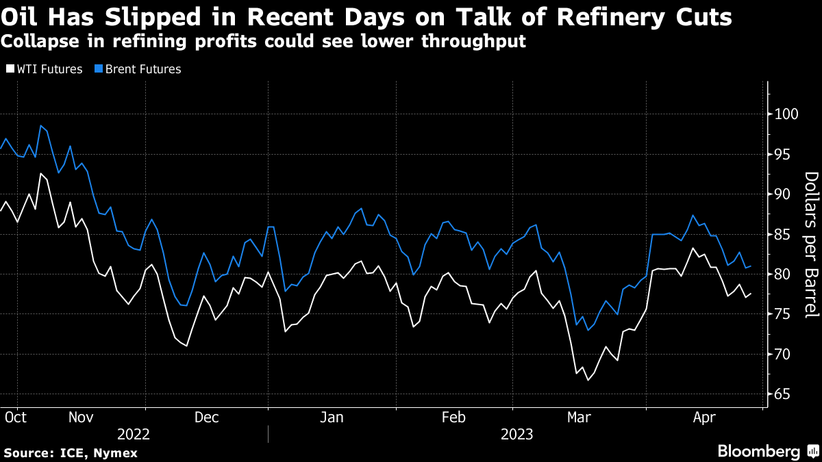 Crude is now close to where it was before the Organization of Petroleum Exporting Countries and its allies announced a shock production cut earlier this month. A deterioration in oil-refining profits over the last few weeks has left companies considering lower processing rates, and key indicators in the Asian crude market have continued to weaken.