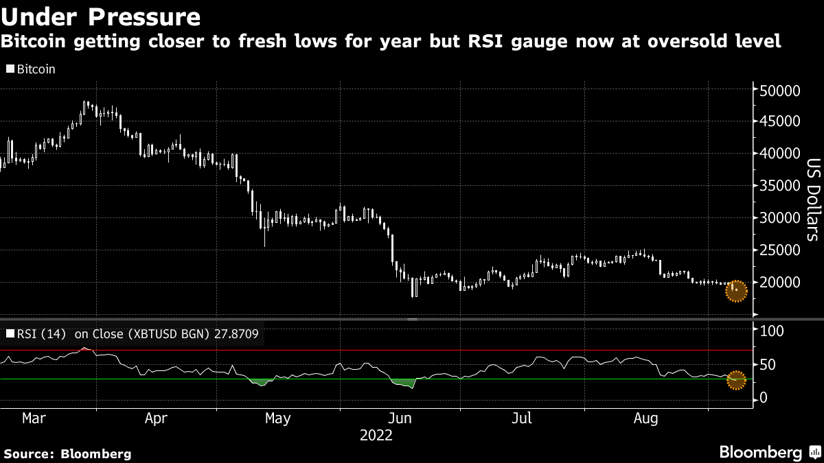 Surging real interest rates -- seen as the true cost of borrowing -- are heaping pressure on a range of risk assets and crypto is no exception. The retreat in Bitcoin is taking it closer to a nadir of about $17,600 that was hit in June in the wake of blowups at crypto lenders and hedge funds.