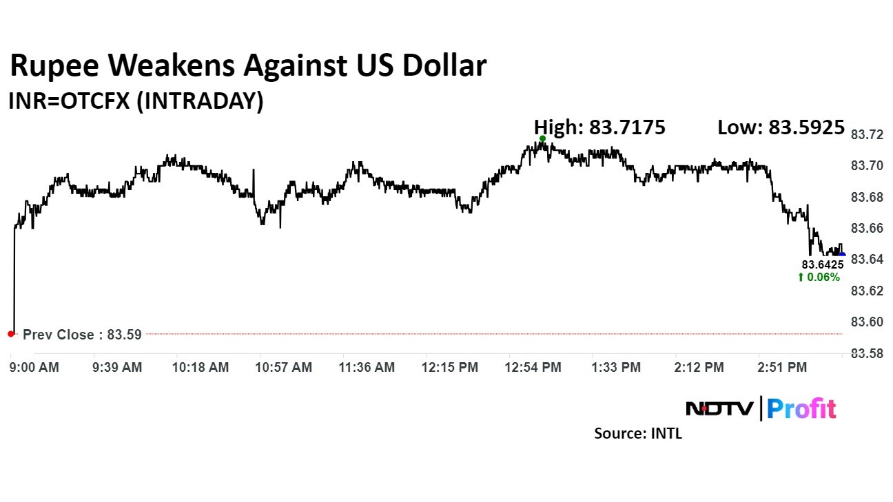 The rupee depreciated by 4 paise to close at 83.64 against the US dollar, according to Bloomberg data.