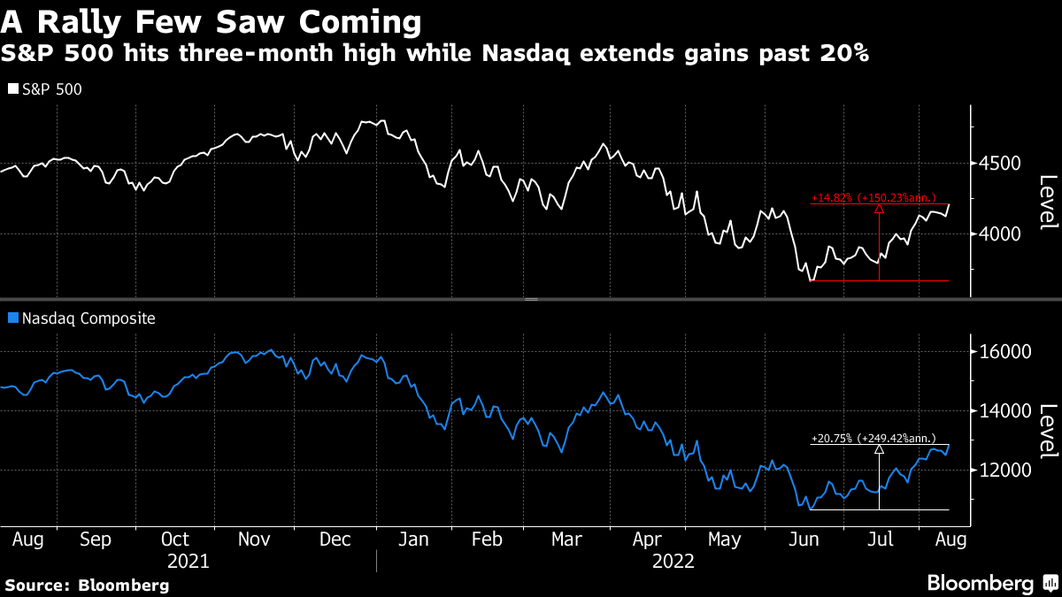 The speed with which views are evolving can be seen in notes from Michael Purves, founder of Tallbacken Capital Advisors. Days after slashing his year-end target for the S&P 500 to 4,500 from 5,500, the market veteran said Wednesday's rally pushed through some key chart levels that open the door for “an abrupt move” to 4,400. The index closed at 4,210 Wednesday.