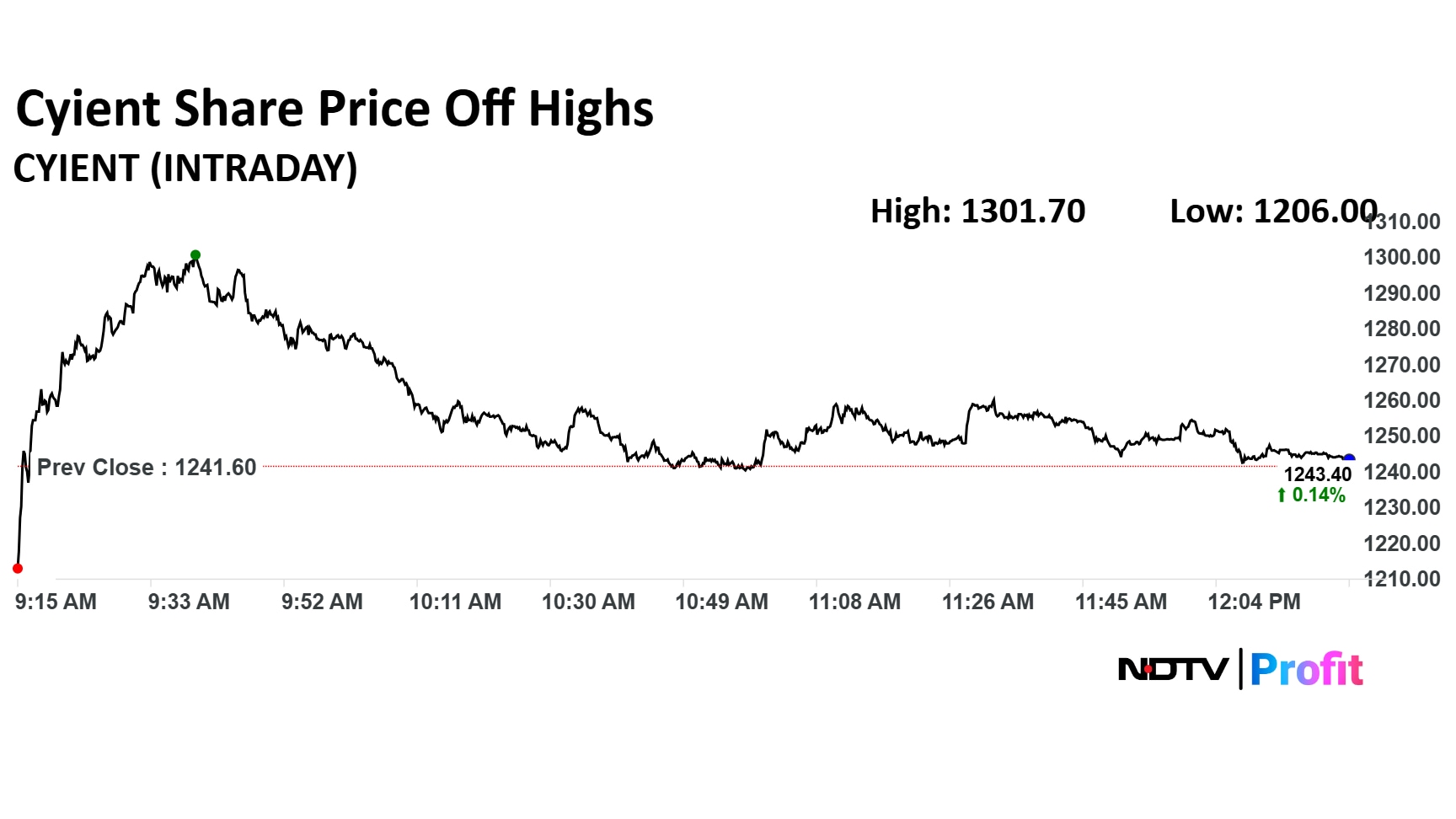 Cyient share price rose 4.84% to Rs 1,301.70 apiece, the highest level since July 17. It was trading 0.65% higher at Rs 1,250 apiece as of 12:34 p.m., as compared to 0.92% decline in the NSE Nifty 50 index.
