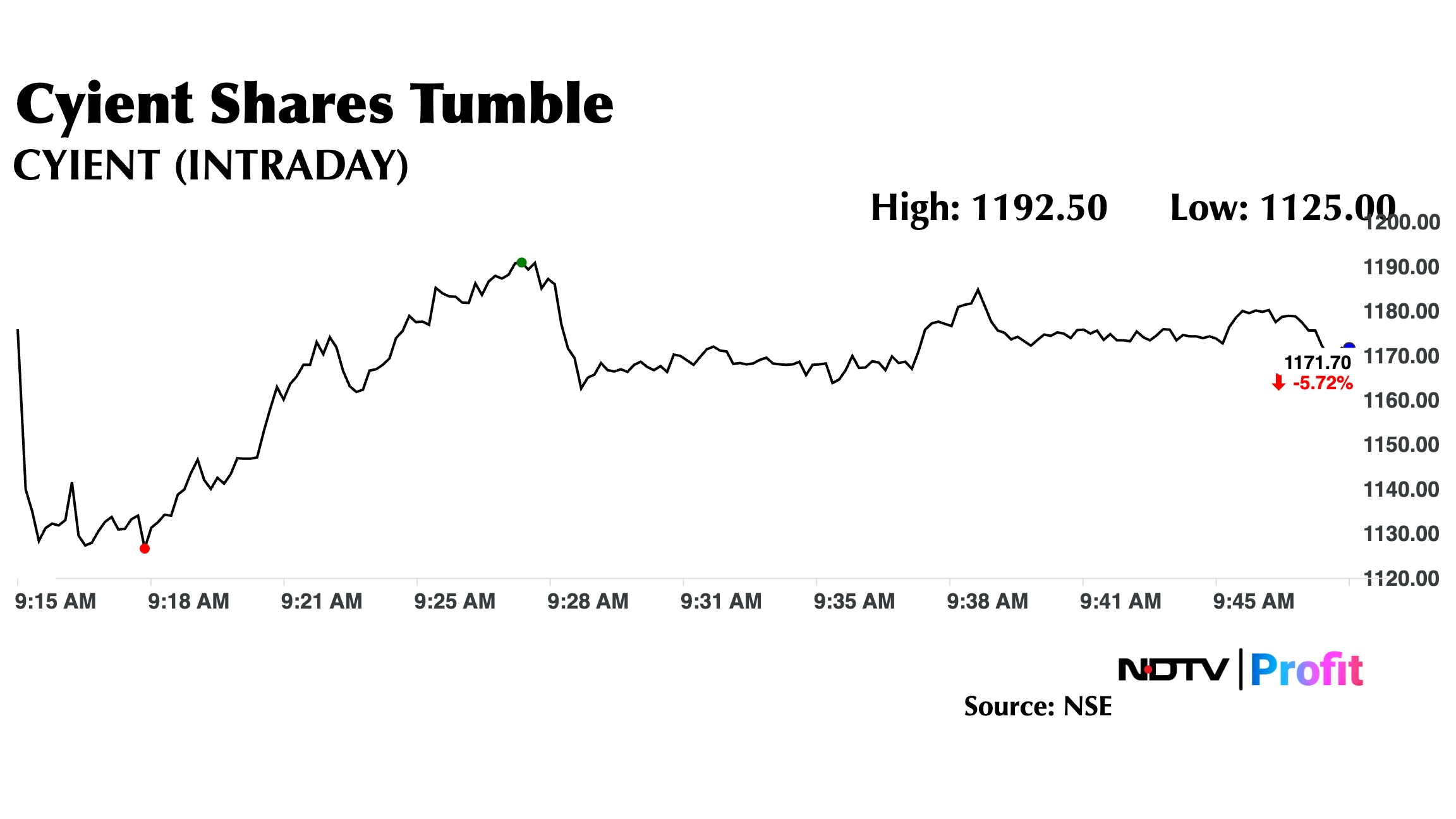 The scrip fell as much as 9.48% to Rs 1,125 apiece, the highest level since April 9, 2025. It pared losses to trade 5.40% lower at Rs 1,175.70 apiece, as of 9:47 a.m. This compares to a 0.3% decline in the NSE Nifty 50 Index.