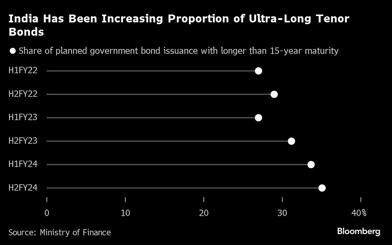 After selling 50-year bonds for the first time last year, India is now seeking to issue longer-maturity bonds to fund projects from renewable energy to public transport. This reflects the rising heft of domestic institutional investors, a key source of demand for debt with longer maturities.