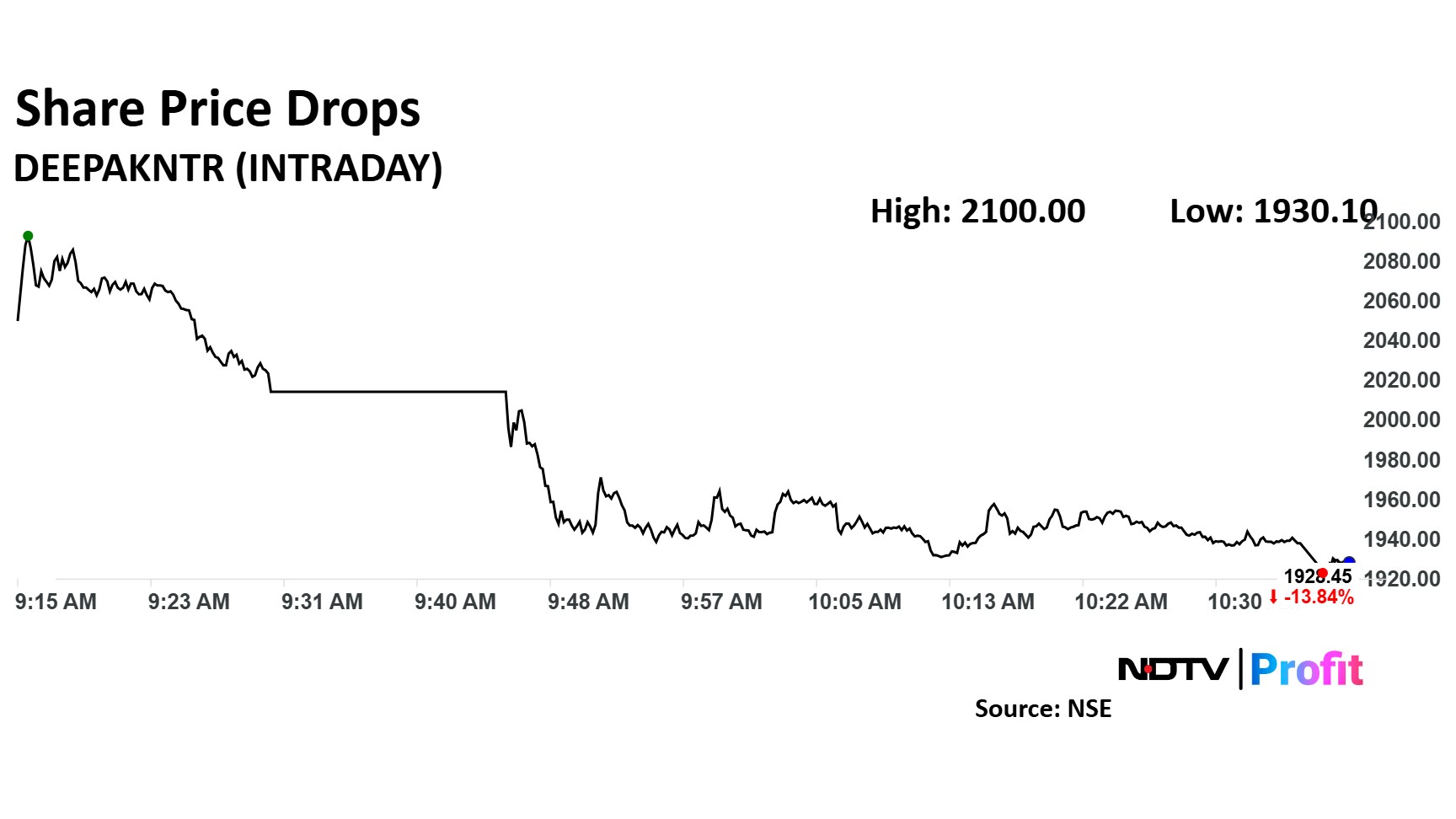 Shares of Deepak Nitrite Ltd. plummeted to a 15-month low on Friday, hitting the lower circuit limit, after the company reported disappointing third-quarter earnings. The stock initially fell by 10%, triggering the lower circuit, which was subsequently revised, allowing the stock to decline further to 13%. This sharp drop reflects investor concerns about the company's financial performance.