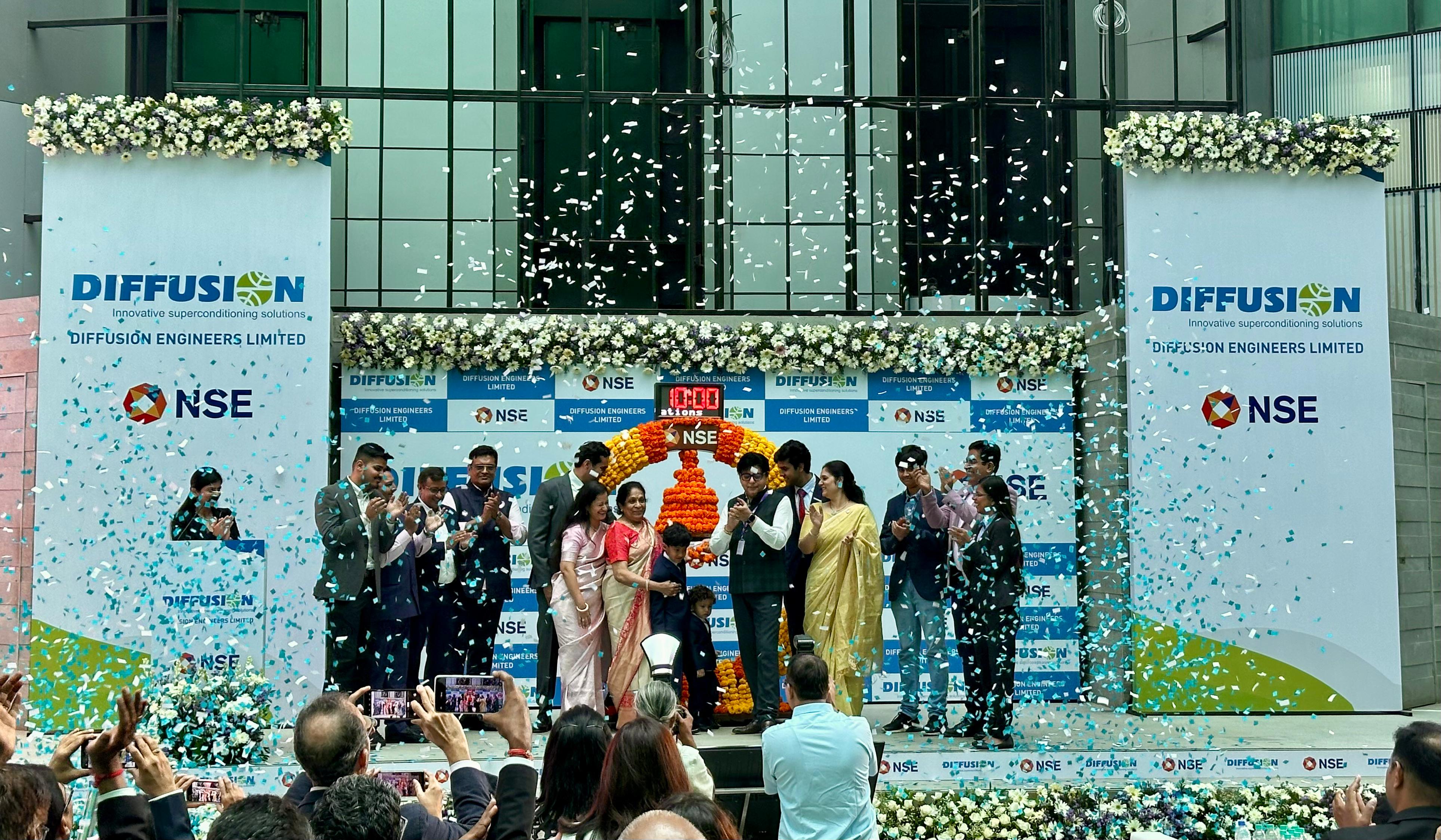 Diffusion Engineers Ltd. share price closed at Rs 203.17 on the National Stock Exchange, a premium of 21% over the issue price of Rs 168 apiece. The stock closed at Rs 197.35 per share on the BSE, marking a premium of 17%.
