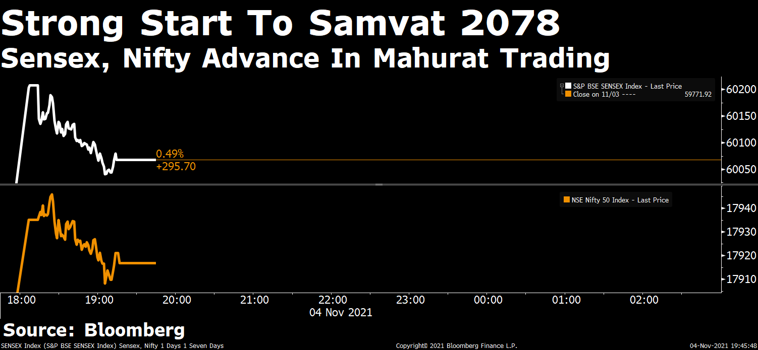 Muhurat Trading: Sensex Ends Nearly 296 Points Up; Nifty Above 17,900