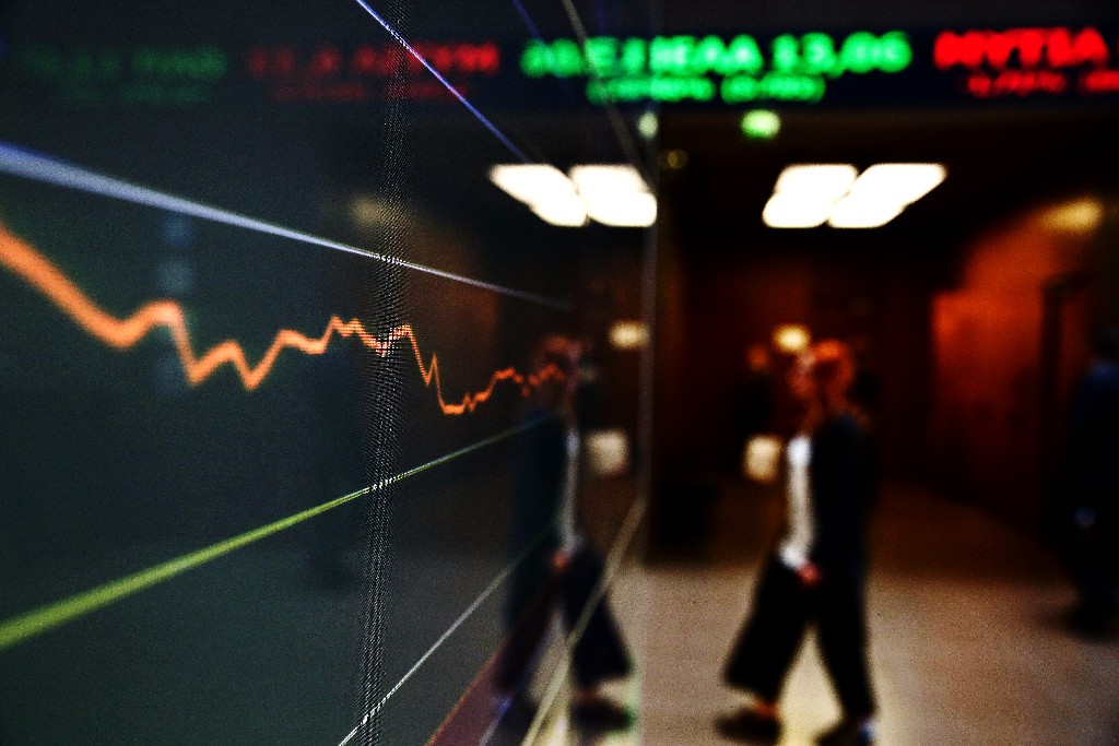 An employee passes an electronic index curve displaying current share prices. Photo: Bloomberg