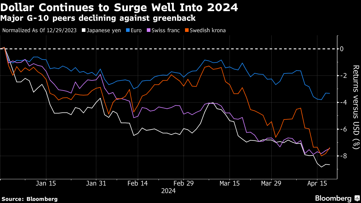 (Bloomberg) -- The world's financial markets are encountering a force they didn't bet on for 2024: A strong dollar is back and looks set to stay.