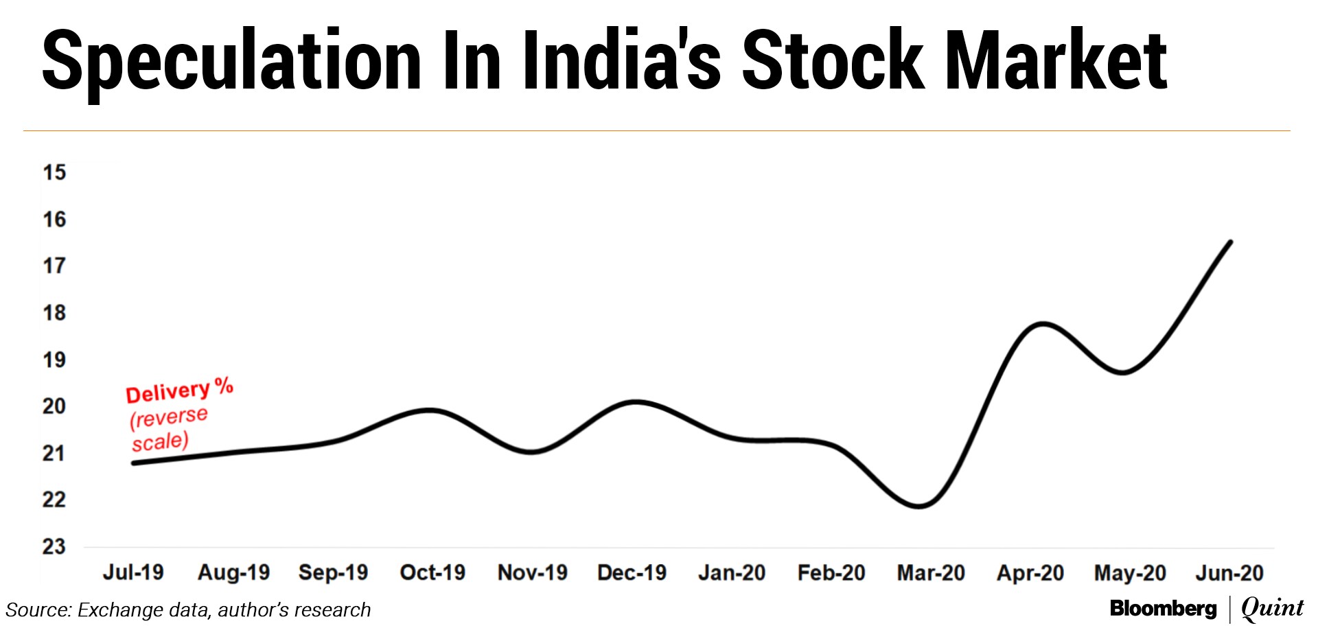 In fact, measured as delivery percentage, speculation level in June in India's stock markets was the highest in 15 years.