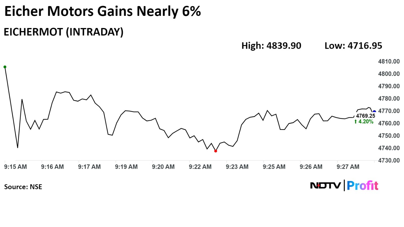 Shares rose as much as 5.75% before cooling off a bit to trade 4.2% higher at Rs 4,769 apiece as of 10:40 a.m. This compares to a 1.6% rise in the NSE Nifty 50.