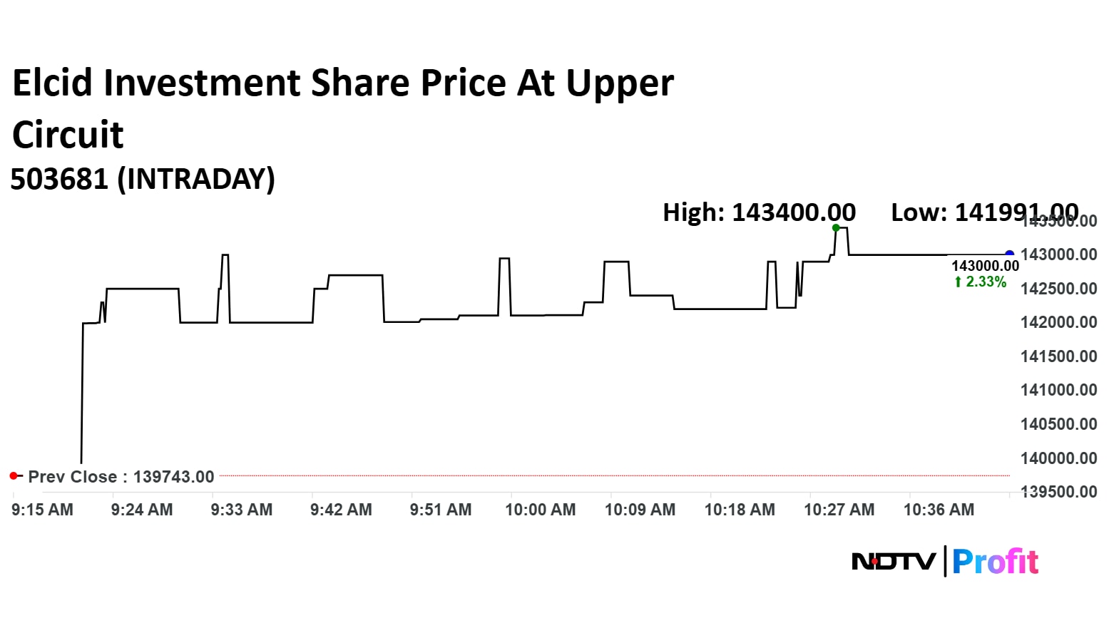 Elcid Investments Ltd.'s share price climbed over 2% to hit upper circuit on on Wednesday, after the company announced the record date for its upcoming dividend a day earlier.