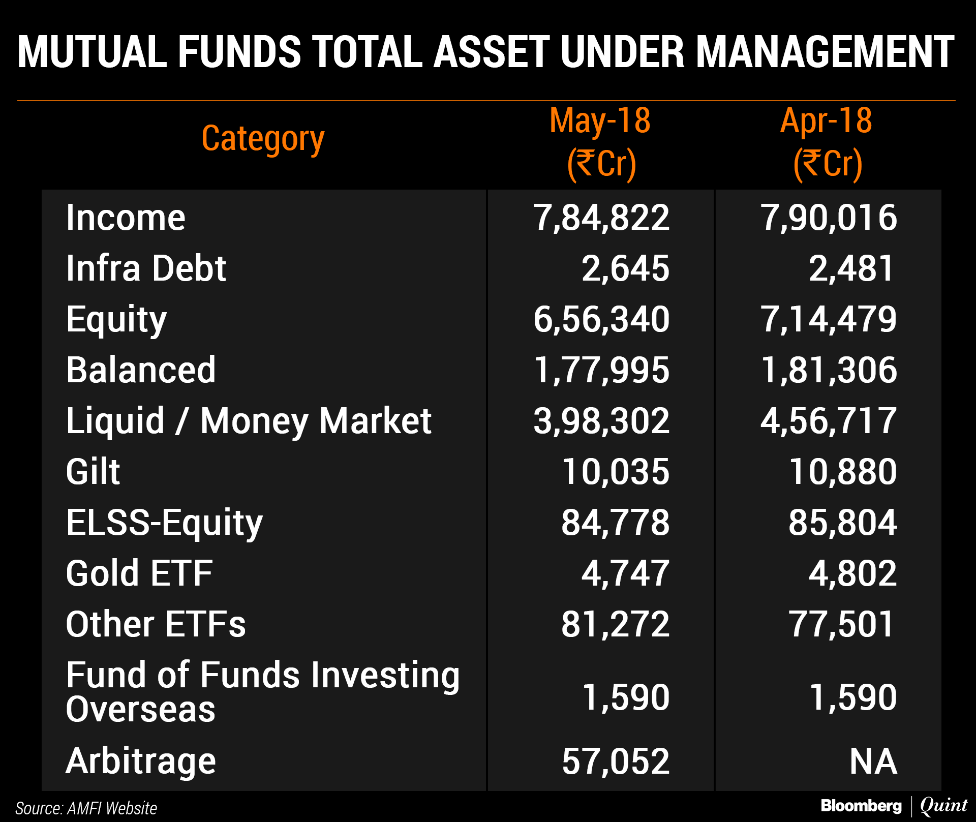 Total assets under management declined 3 percent over the previous month in May to Rs 22.6 lakh crore. Equity assets under management declined 7.4 percent to Rs 7.4 lakh crore. Balanced fund assets declined 2 percent during the month to Rs 1.78 lakh crore.