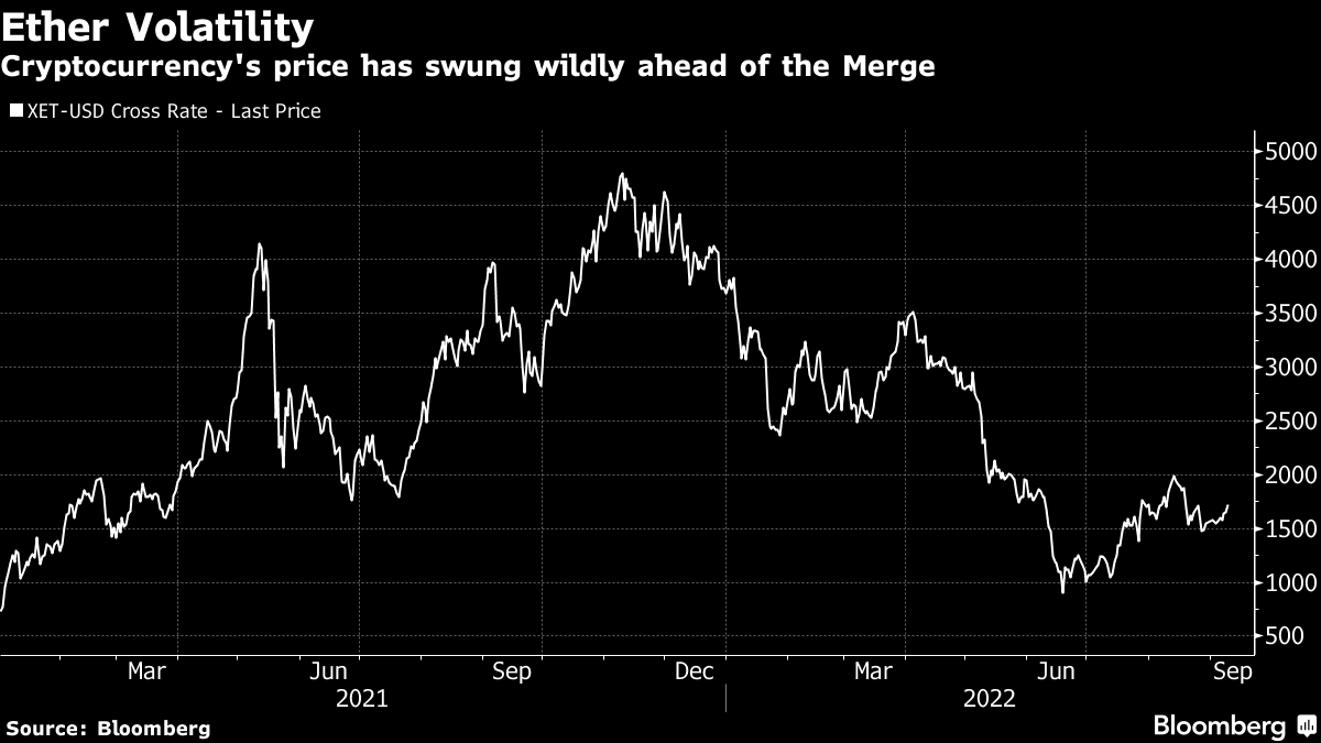 Ether was down 1.2% to $1,584 following the merge. The token has surged more than fivefold in 2021, outperforming Bitcoin by a wide margin, in part on optimism over the Merge. Both cryptocurrencies have struggled since hitting record highs in November, with Ether down more than 50% this year.