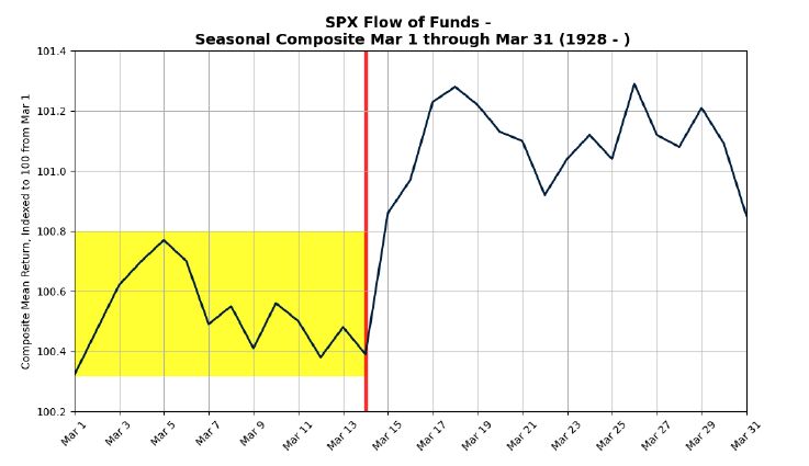 In a note to clients, Rubner said March 14 “sticks out” to him as a potential low in stocks, with history suggesting that the first half of the month “typically chops around.”