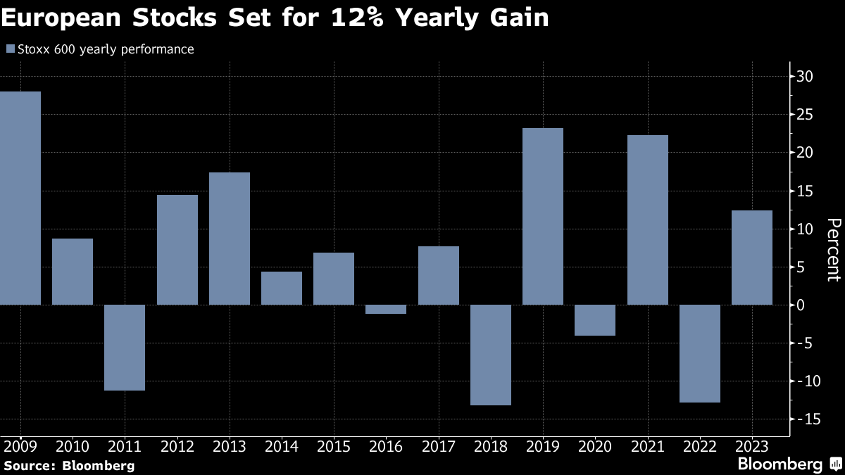 (Bloomberg) -- European equities were little changed, hovering near their highest level since January 2022, as trading resumed in the region following the Christmas break.