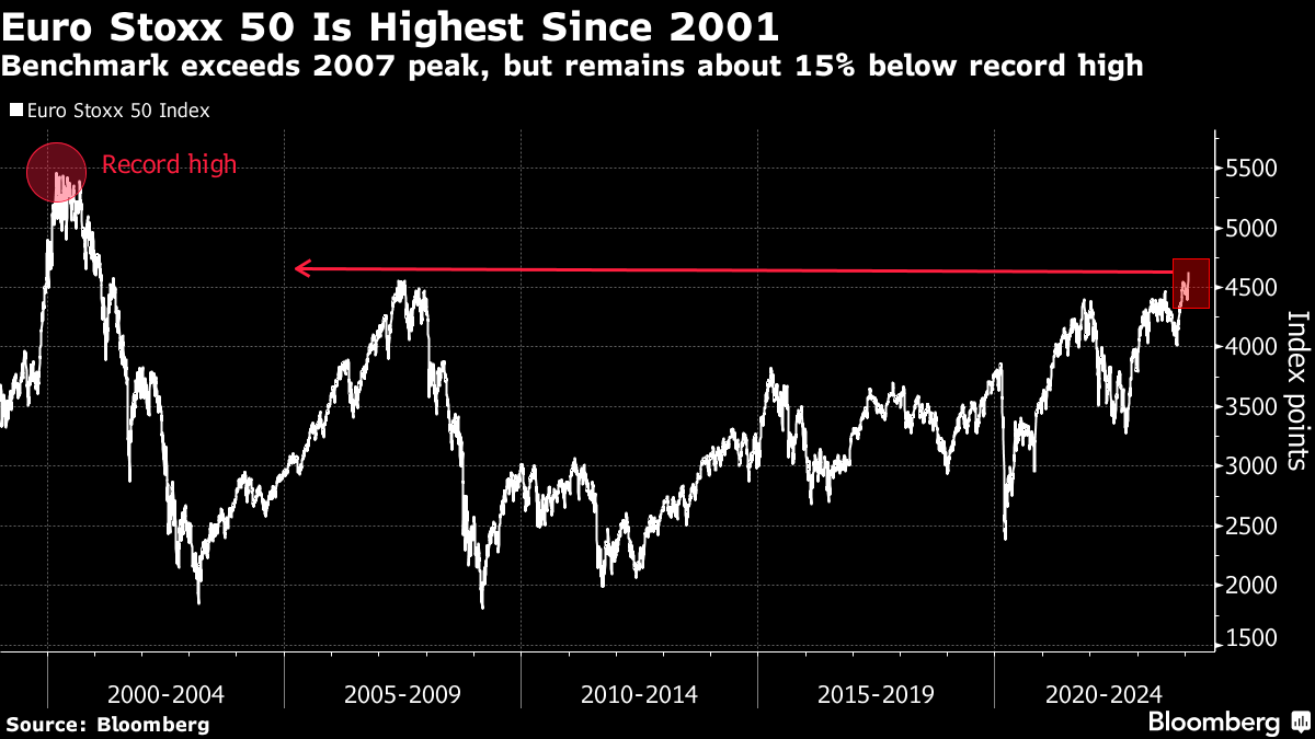 European equity markets are hovering near their highest level in two years and up about 1% year-to-date. The Euro Stoxx 50 index has also hit its highest since 2001, with the latest leg of the surge powered by blowout earnings from luxury behemoth LVMH and the region's two biggest tech stocks, ASML and SAP.