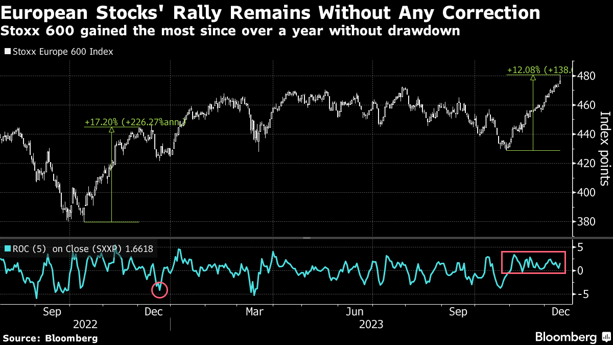 However, the market is now looking overheated, according to some technical indicators. The Stoxx 600's Relative Strength Index shows the benchmark is now the most overbought since November 2021.
