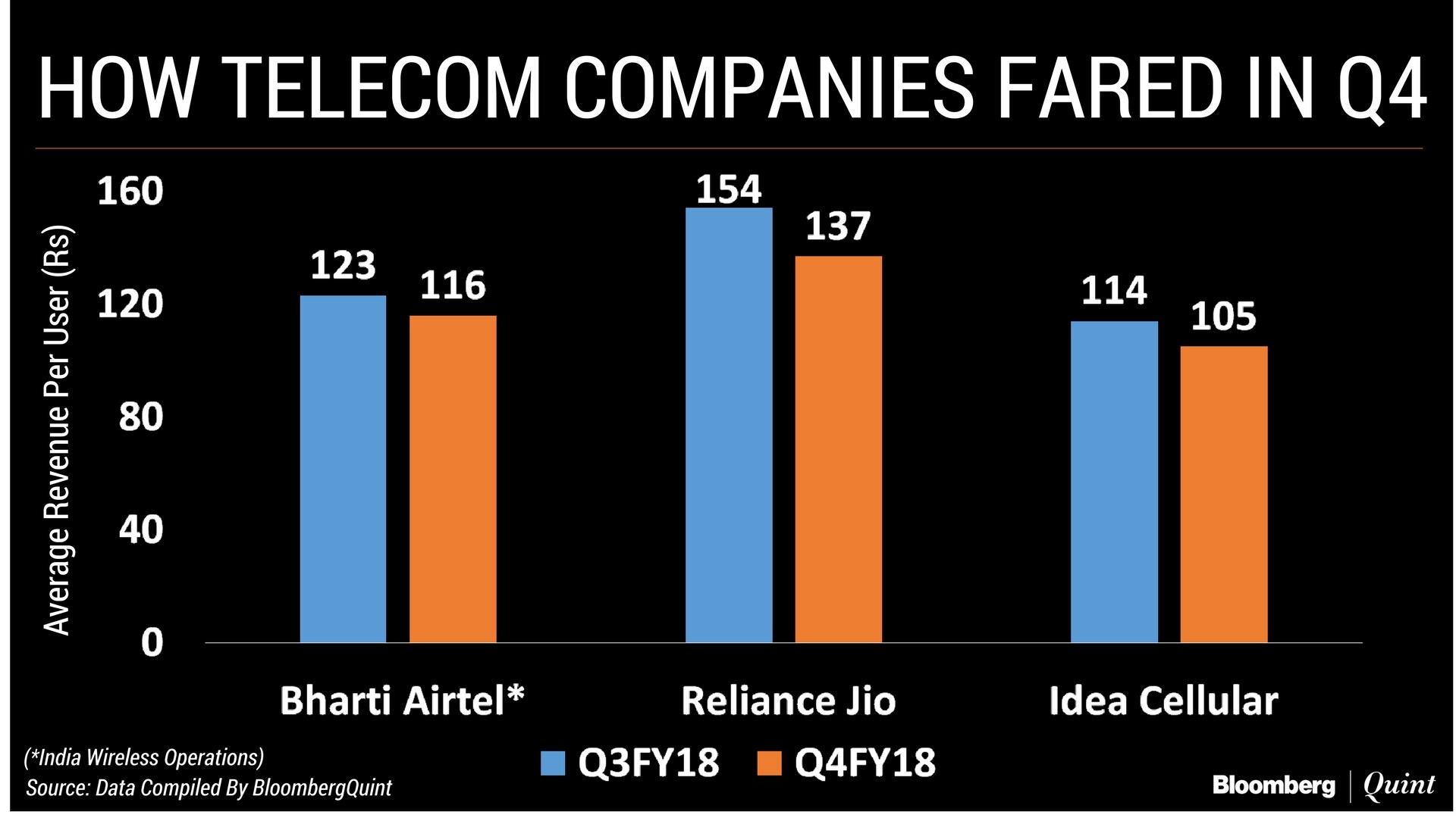 His Reliance Jio Infocomm Ltd. was the worst hit as tariffs continue to fall in the world's second-largest telecom market. Not only did Jio's growth slow down, its average revenue per user fell the most in the final quarter of the previous financial year. It reported its second straight profit but a flat growth.