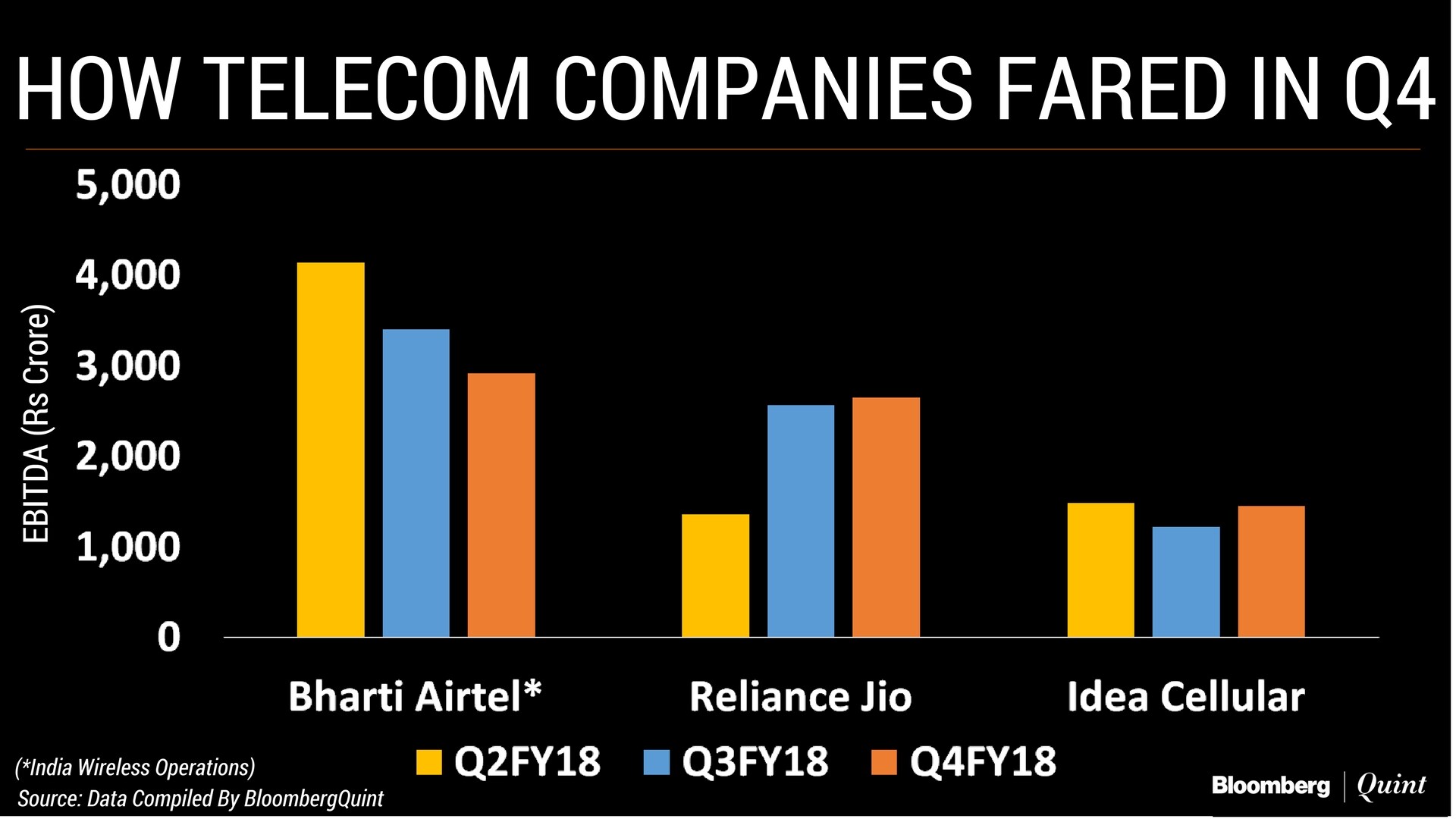 Bharti Airtel was the only operator to report lower earnings before interest, tax, depreciation, and amortisation compared with the previous quarter because of rising costs and falling revenue. Idea Cellular's Ebitda jumped more than 18 percent – highest in the last 19 quarters – on cost cuts.