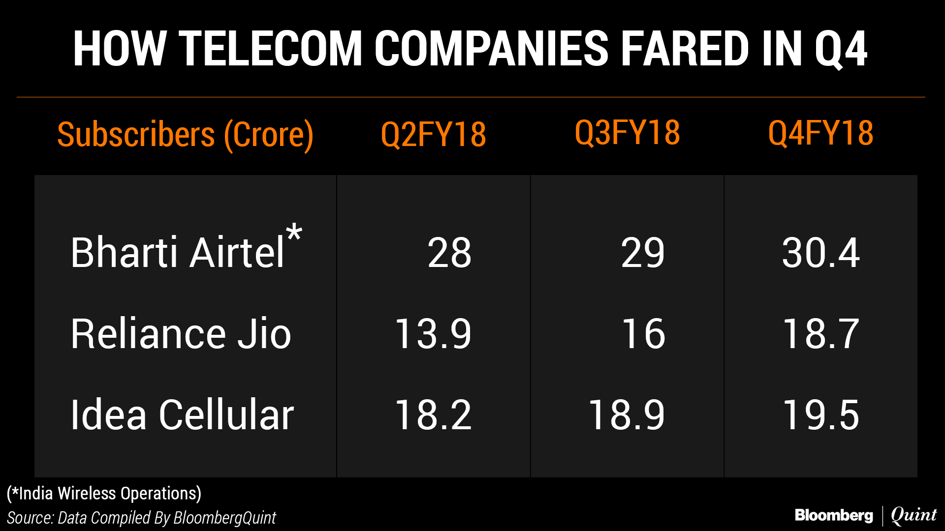 Reliance Jio continued to add the most number of subscribers to its network. It now has 18.6 crore users compared with Bharti Airtel's 30.4 crore and Idea Cellular's 19.5 crore.