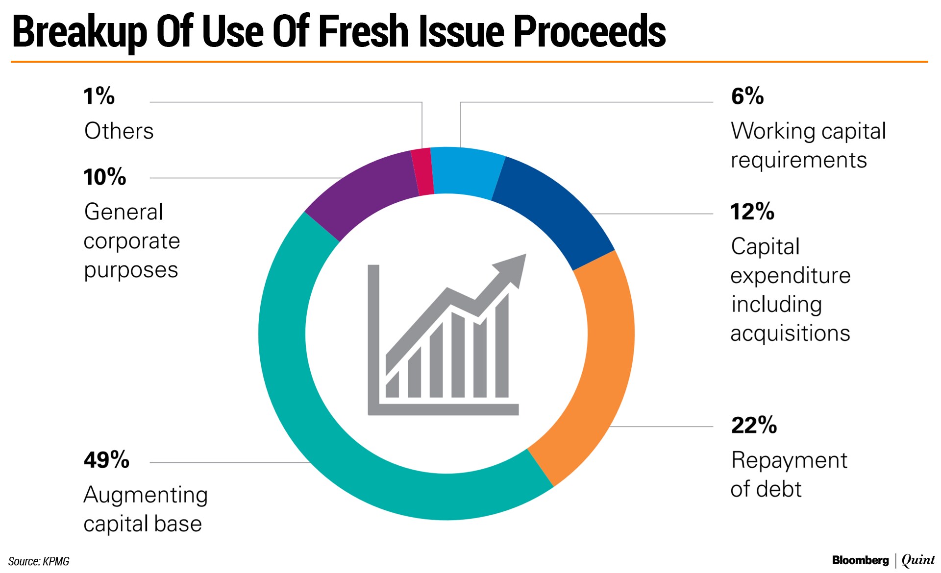 About 12 percent of the fresh capital was used for capital expenditure including acquisitions, 10 percent of the funds were used for general corporate purposes and about 6 percent of the funds were used for working capital requirements, KPMG noted.