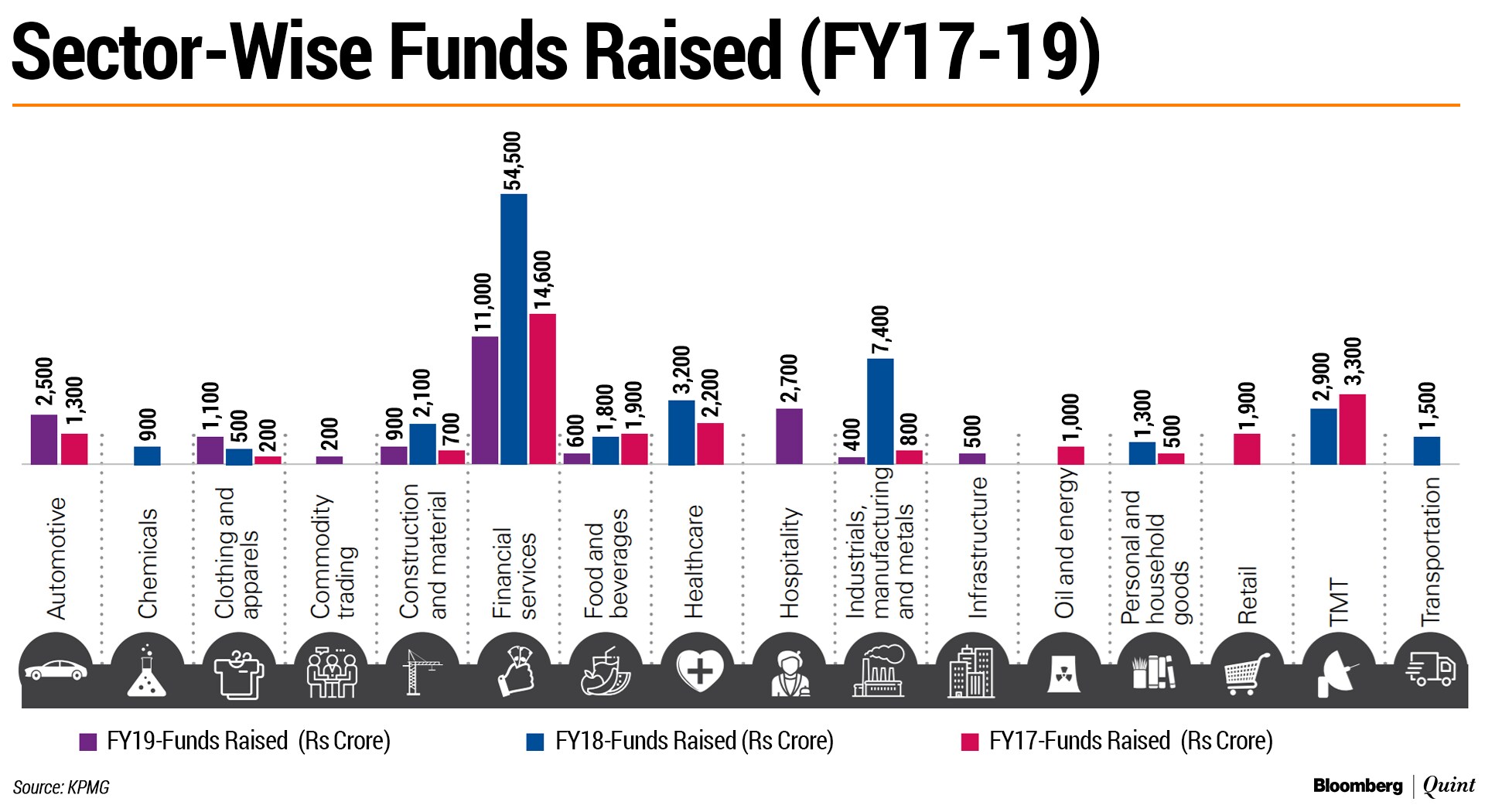 Financial services companies raised Rs 11,000 crore or 55 percent of the overall funds raised through IPOs in 2018-19, KPMG said, adding that the firms in the sector raised Rs 14,600 crore (51 percent of overall funds raised) and Rs 54,500 crore (72 percent of overall funds raised) during 2016-17 and 2017-18, respectively.