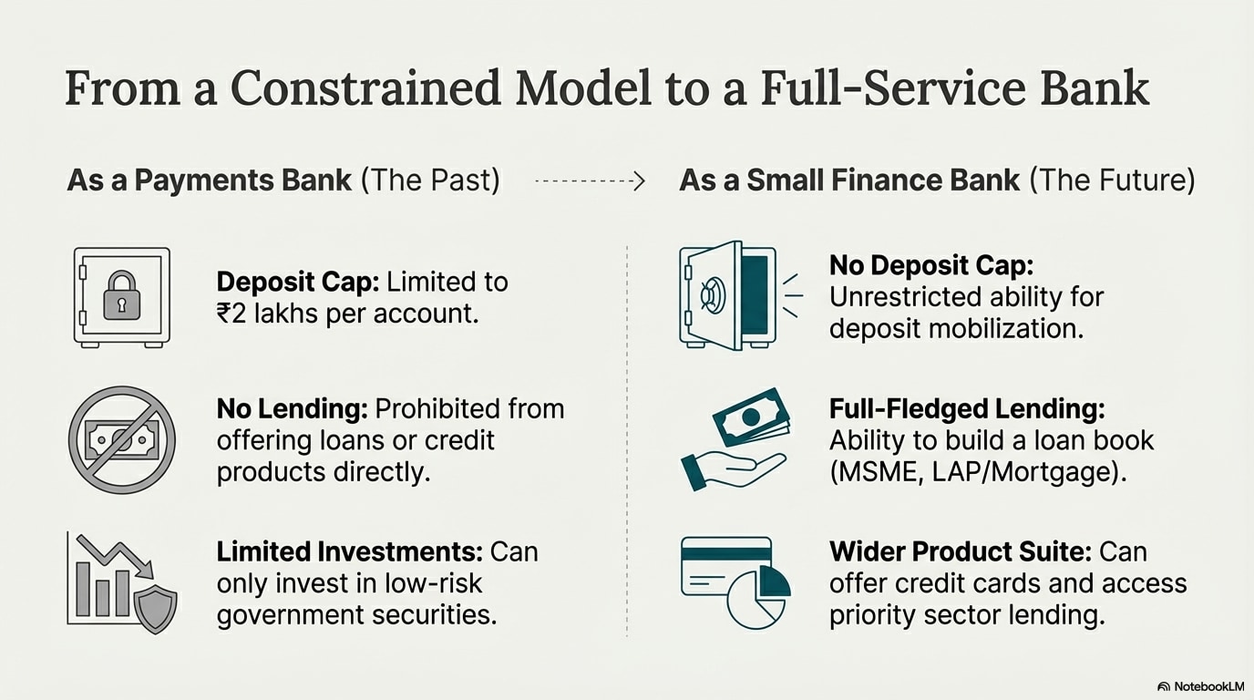 The conversion to a small finance bank could unlock a myriad of opportunities for Fino Payments Bank, especially in terms of operational capabilities - some of which were previously limited under a payments bank license.