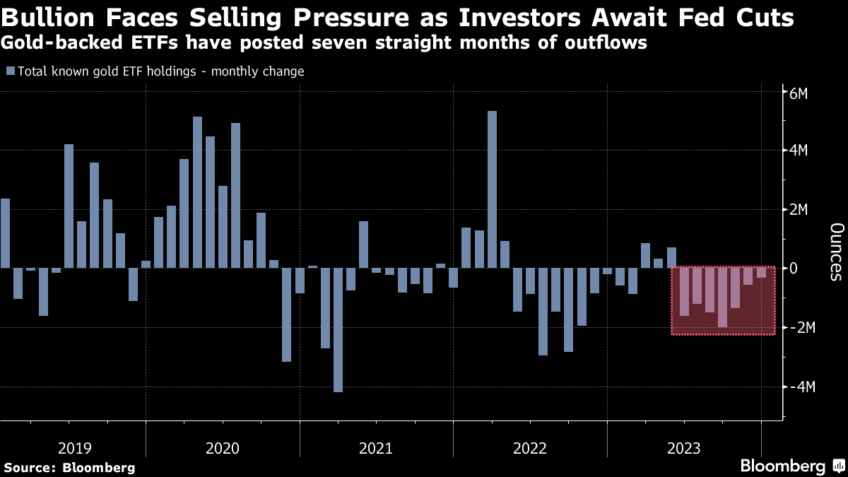 The future of spot gold rests heavily in the hands of the US Federal Reserve. Expectations that the central bank was poised to cut interest rates sooner than expected helped propel the precious metal to a record last month. But that euphoria has since tempered with swaps markets now seeing an almost 70% chance of a cut by March — lower than the 85% odds seen in late December. Investors of bullion-backed exchange-traded funds are on edge, with December marking the seventh straight month of outflows. The trend may not reverse until the market is convinced that the Fed is firmly on a path of looser monetary policy, which tends to help the non-interest bearing metal.